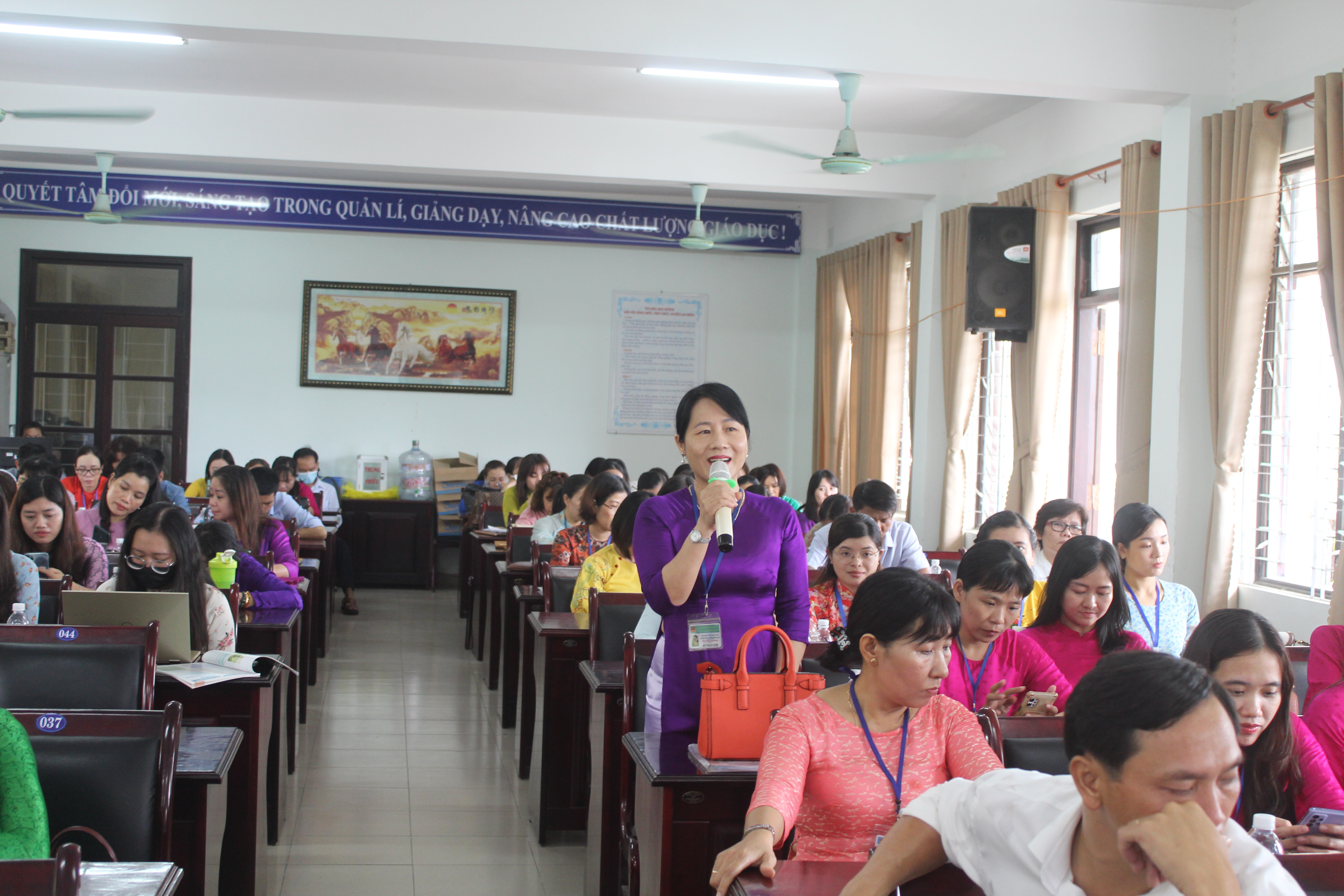 Cô Trần Thị Kim Vân – Hiệu trưởng giải trình các ý kiến tại Hội nghị
