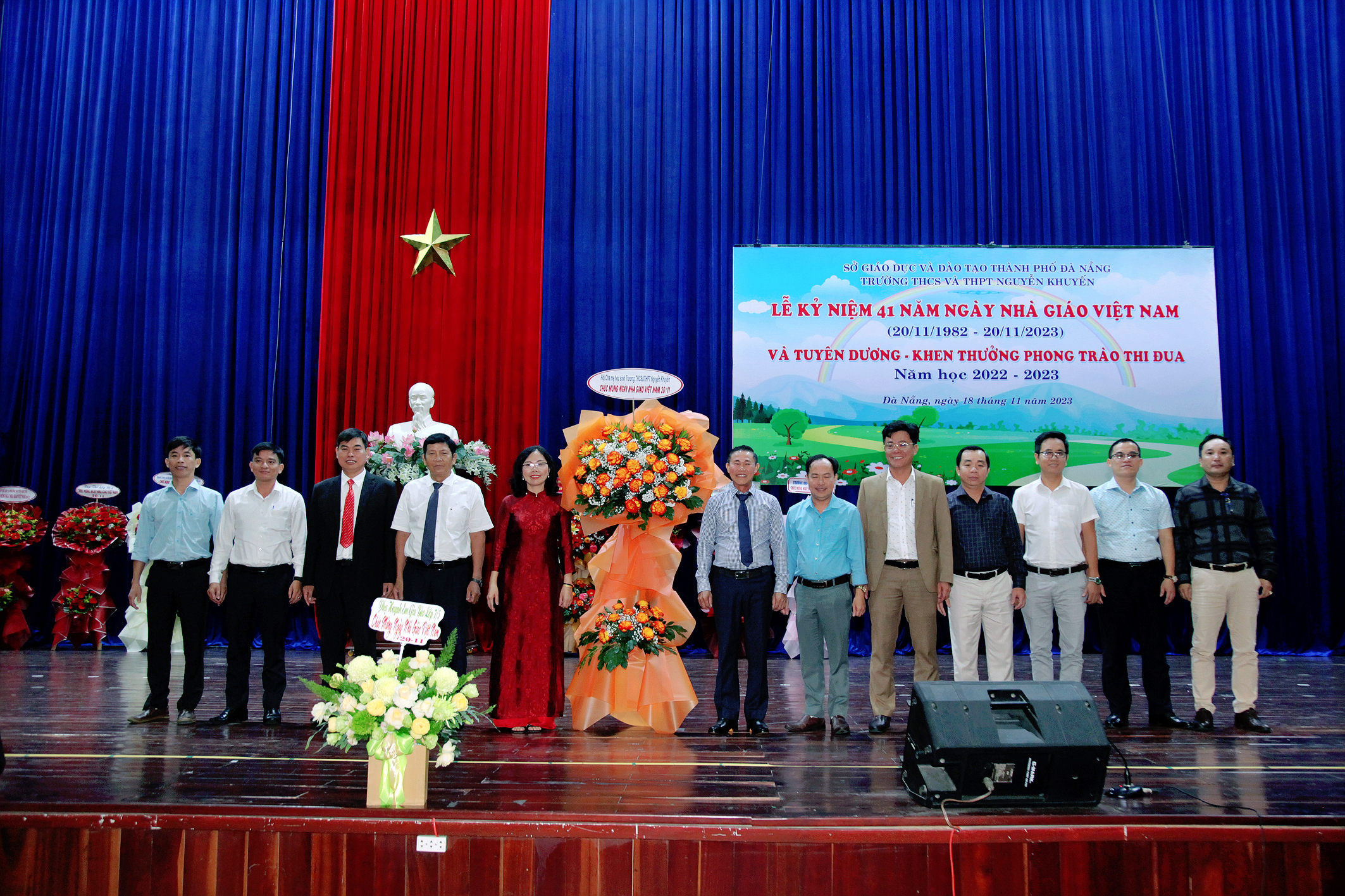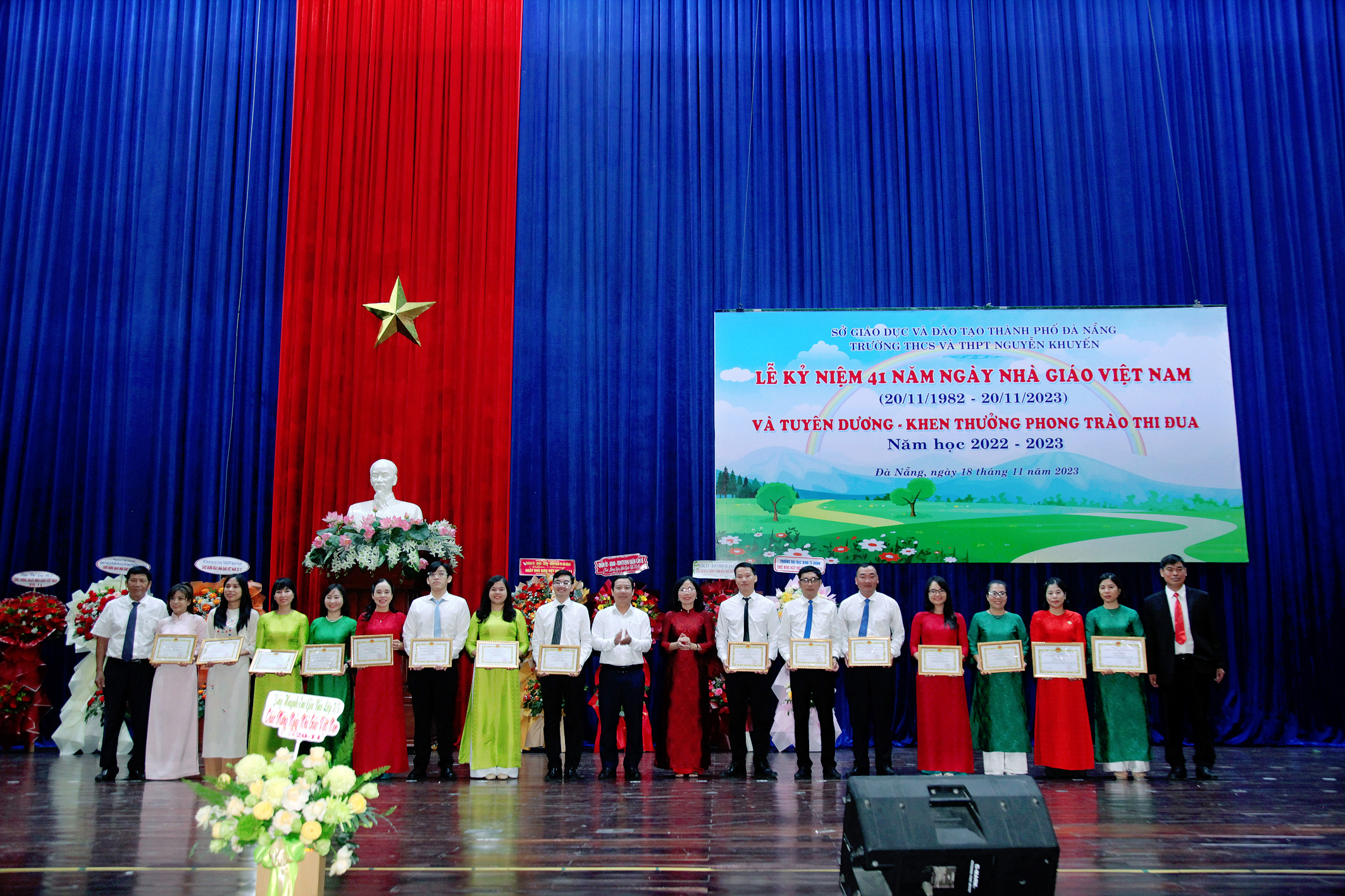 Trong không khí rộn ràng những ngày cuối tháng mười một, Trường THCS và THPT Nguyễn Khuyến long trọng tổ chức Lễ kỉ niệm 41 năm ngày Nhà giáo Việt Nam (20/11/1982 – 20/11/2023) và tuyên dương, khen thưởng phong trào thi đua năm học 2022 – 2023; đây là dịp để các thế hệ thầy và trò cùng nhau ôn lại truyền thống của nghề dạy học đồng thời tuyên dương khen thưởng những tập thể, cá nhân đã đạt thành tích trong phong trào thi đua năm học 2022 – 2023.